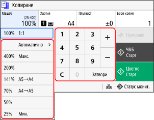 Мащабирането се задава автоматично според размера на хартията, използвана за копиране.