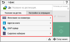 Посочване на местоназначенияИзползвайте [Адресна книга] или [Съкратено набиране], за да посочите Cc и Bcc местоназначения.