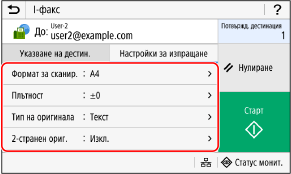 Ако местоназначението при изпращане е ограничено поради настройките за удостоверяване за функцията за изпращане, не можете да посочите друго местоназначение. За подробности се свържете с администратора.