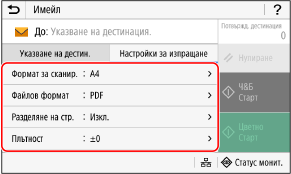 Можете да конфигурирате настройките за електронна поща, когато изпращате сканирани данни по електронна поща или I-Fax.