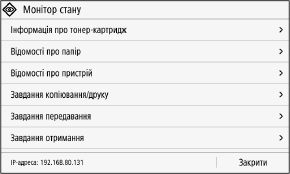 Цей екран відображається, якщо натиснути [Монітор стану] на екрані [Головний] і в інших розташуваннях.