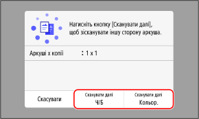 Натисніть [Сканувати далі Ч/Б] або [Сканувати далі Кольор.].