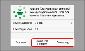Коли сканування всіх документів буде виконано, натисніть [Почати надс.] або [Пер. й надісл.].