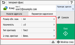 Якщо вибір адресатів у функції надсилання обмежений через параметри автентифікації, ви не зможете вибрати іншого адресата. За докладною інформацією звертайтеся до адміністратора.