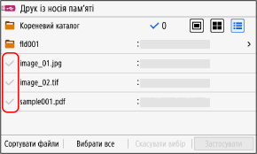 Установіть прапорці для файлів, які необхідно роздрукувати.