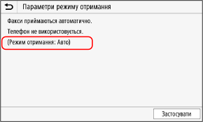 Буде застосовано параметри, налаштовані в посібнику з налаштування факсів, і тип телефонної лінії буде налаштовано автоматично.