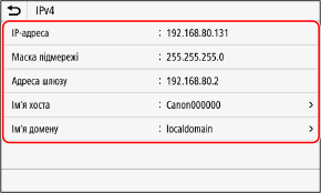 Можна переглянути параметри IP-адреси, установленої на апараті, як-от адресу IPv4 або IPv6.
