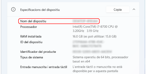 A [Especificacions del dispositiu], vegeu el nom de l'ordinador.