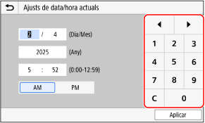 Premeu els números de les tecles numèriques per introduir un valor.