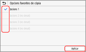 Seleccioneu les caselles dels paràmetres que desitgeu assignar com a botons d'accés directe i premeu [Aplicar].