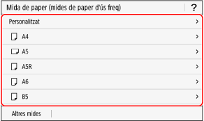 Si teniu carregat paper en orientació horitzontal, seleccioneu [A5]. Si teniu carregat paper en orientació vertical, seleccioneu [A5R].
