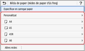 Si teniu carregat paper en orientació horitzontal, seleccioneu [A5]. Si teniu carregat paper en orientació vertical, seleccioneu [A5R].