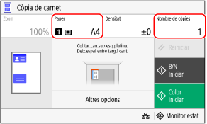 Ajusteu la mida i el tipus de paper i el nombre de còpies.