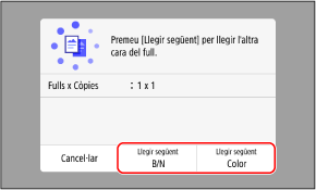 Podeu copiar el revers amb un mode de color diferent (blanc i negre o color) al de l'anvers. Per copiar el revers en blanc i negre, premeu [Llegir següent B/N]. Per copiar en color, premeu [Llegir següent Color].