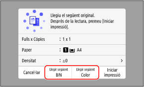 Premeu [Nombre de còpies], utilitzeu les tecles numèriques per introduir el nombre de còpies i premeu [Tancar].