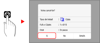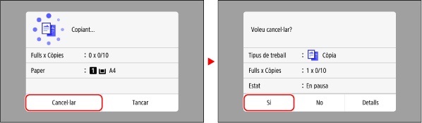 Seguiu les instruccions a la pantalla per cancel·lar una operació de còpia.