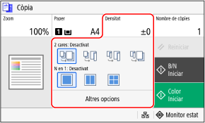Utilitzeu el botó [2 cares] a la pantalla de còpia per seleccionar el tipus de còpia a 1 o 2 cares.