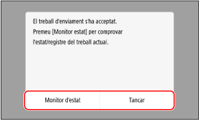 Un cop finalitzada la lectura, s'enviaran les dades llegides. Utilitzeu el [Monitor estat] per veure l'estat i el registre d'enviament. Comprovació de l'estat d'enviament i desament i del registre de dades llegides