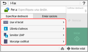 A la pestanya [Especificar destinació], especifiqueu la destinació. Especificació de destinacions