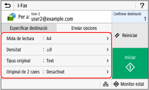 Si la destinació està restringida en l'enviament per la Configuració d'autenticació de la Funció d'enviament, no podreu especificar cap altra destinació. Per obtenir-ne informació, contacteu amb l'administrador.