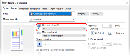 Es mostra la pantalla [Preferències d'impressió] del controlador de la impressora.