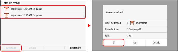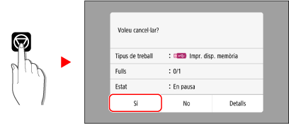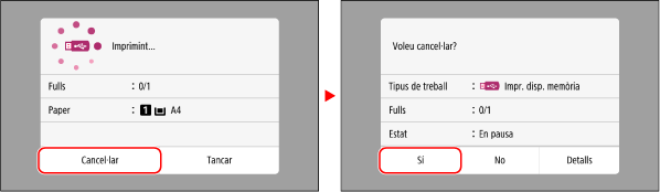 En aquest cas, cancel·leu la impressió mitjançant el tauler de control de l'equip o Remote UI (IU remota).