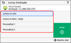 El format de les dades llegides, la ubicació per desar-les en l'ordinador i altres paràmetres s'estableixen per a cada configuració de lectura. L'original es llegeix segons la configuració de lectura seleccionada.