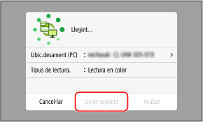 Quan s'utilitza l’equip només amb un ordinador connectat per USB, apareix la pantalla de lectura. Aneu al pas 5.