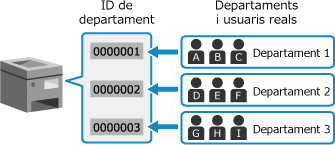 Assigneu ID de departament als usuaris i grups segons l'entorn d'ús i la finalitat. A més, la configuració d'un PIN a un ID de departament pot impedir-ne l'accés no autoritzat i permetre una gestió més estricta.