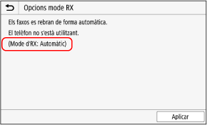 S'apliquen les opcions configurades a la Guia de configuració del fax i el tipus de línia telefònica es configura automàticament.