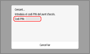 Quan aparegui la pantalla, heu de registrar el codi PIN per a WPS a l'encaminador LAN sense fil abans de 10 minuts.