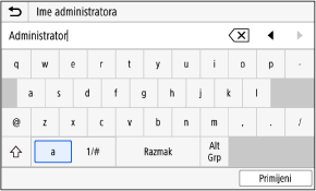 Putem upravljačke ploče mogu se unositi slova, brojke i simboli.