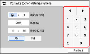 Numeričke se tipke prikazuju za stavke u koje je moguće upisati samo brojke.
