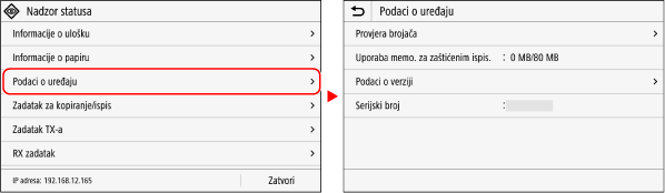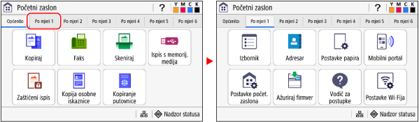Dodirom naziva ili gumba stavke odabire se ta stavka. Prikazat će se odabrani zaslon ili će se pokrenuti odabrana funkcija.