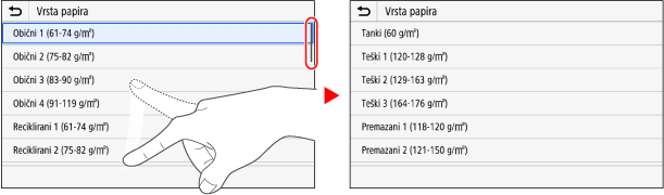 Kada se na zaslonu prikaže klizač, to znači da se neke informacije ne mogu u cijelosti prikazati na zaslonu. Kvrcnite ili povucite zaslon u pravcu u kojem ste pomaknuli vršak prsta.