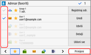 Kada odredišta navodite tako da na zaslonu [Početni zaslon] otvarate adresar, poslužite se popisom odredišta.