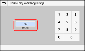 Prikazuje se zaslon [Upišite broj kodiranog biranja].