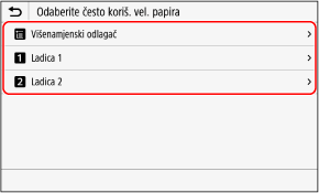 Prikazuje se zaslon [Odaberite često koriš. vel. papira].