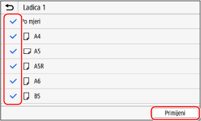 Poništite odabir potvrdnih okvira za formate papira koje želite sakriti pa kliknite [Primijeni].