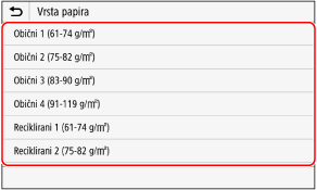 Kada se papir umeće u višenamjensku ladicu, na upravljačkoj ploči prikazuje se zaslon za postavljanje veličine i vrste papira.