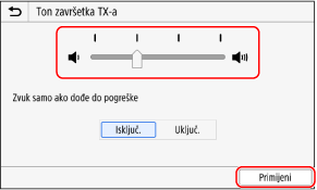 Povucite klizač ulijevo ili udesno da biste podesili glasnoću, a zatim pritisnite [Primijeni].