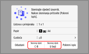 Kada se izvornik postavi na kopirno staklo i kopira obostrano ili uz ispis većeg broja stranica na jednom listu (N na 1), prikazuje se zaslon za skeniranje sljedećeg izvornika.
