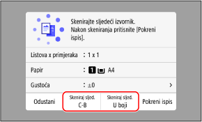 Možete odabrati način prikaza boja (crno-bijelo ili u boji) za svaku putovnicu. Da biste sljedeću putovnicu kopirali crno-bijelo, pritisnite [Skeniraj sljed. C-B]. Da biste zadali kopiranje u boji, pritisnite [Skeniraj sljed. U boji].