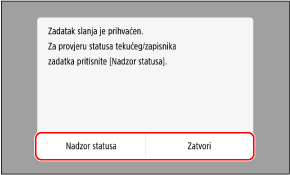 Za prikaz statusa i zapisnika slanja pritisnite [Nadzor statusa]. Provjera statusa slanja i spremanja te zapisnika skeniranih podataka