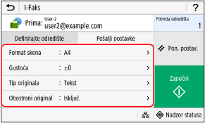 Na kartici [Pošalji postavke] možete postaviti predmet i glavno tijelo poruke e-pošte. Postavke e-pošte i I-faksa