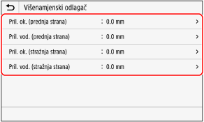 Možete odrediti smjer i širinu za prilagodbu za svaki izvor papira i stranu za ispis (prednju i stražnju stranu).