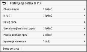 Da bi se zaslon prikazao, pritisnite [Post. detalja za PDF] na zaslonu postavki ispisa s memorijskog medija.