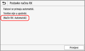 Kada se prikaže poruka [Postavke se konfiguriraju.], prikazat će se zaslon [Postavke načina RX].