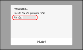 Kada se prikaže taj zaslon, morate registrirati PIN za WPS na usmjerivaču za bežični LAN u roku od 10 minuta.