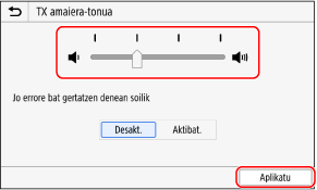 Arrastatu kontrol irristagarria eskuinera edo ezkerrera bolumena doitzeko eta sakatu [Aplikatu].